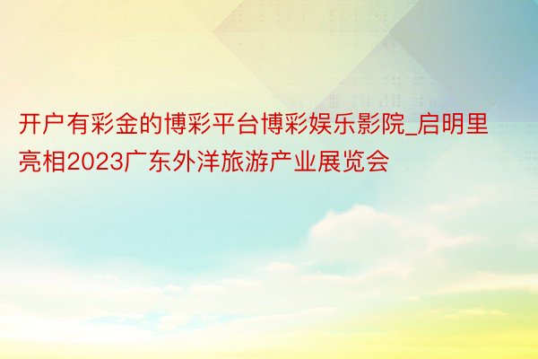 原标题:启明里亮相2023广东外洋旅游产业展览会